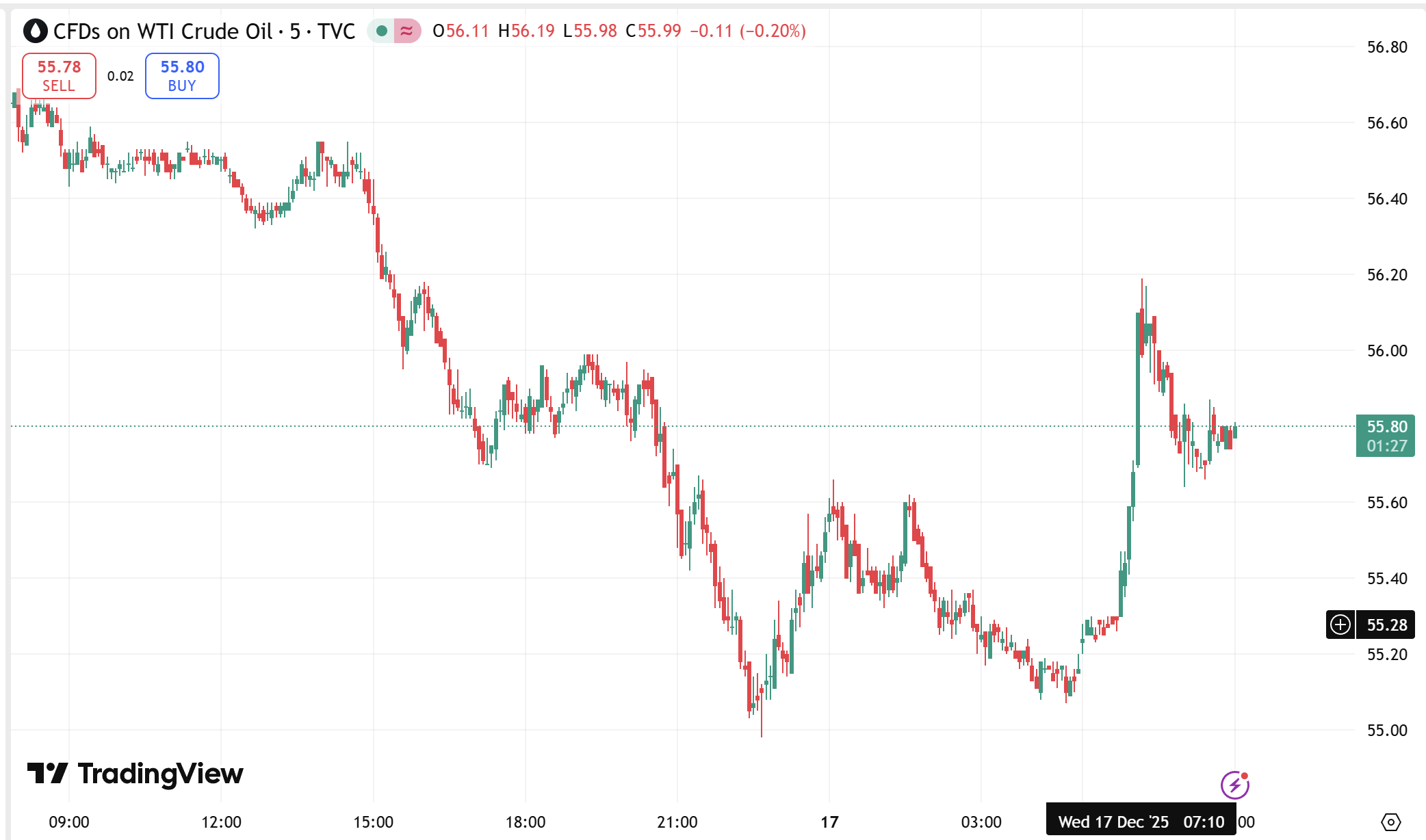 Thông báo này đã ngay lập tức tác động tới thị trường năng lượng. Giá dầu thô Mỹ (WTI) trong phiên giao dịch tại châu Á tăng hơn 1%, lên khoảng 55.96 USD/thùng, phục hồi từ mức đóng cửa 55.27 USD/thùng của ngày thứ Ba – mức thấp nhất kể từ tháng 2/2021. Diễn biến tăng giá phản ánh lo ngại rằng nguồn cung dầu từ Venezuela có thể bị siết chặt hơn nữa, làm căng thẳng dòng chảy dầu thô trong khu vực, dù lượng tồn kho toàn cầu vẫn dồi dào.