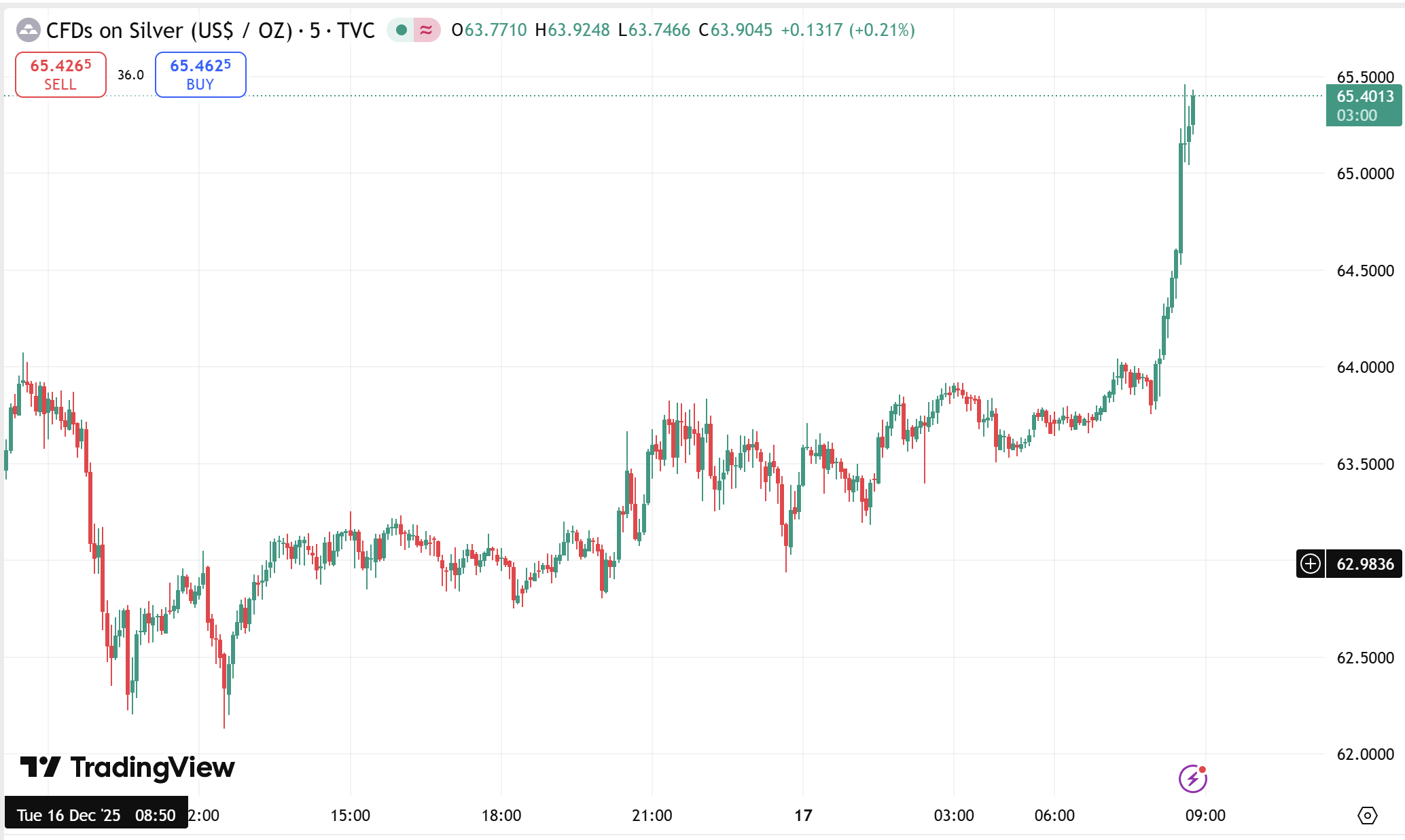 Giá bạc đã bứt phá lên mức cao kỷ lục mới, phản ánh rõ nét sự thay đổi trong cán cân cung – cầu toàn cầu, khi kim loại công nghiệp này vượt xa các chuẩn mực lịch sử. Trong phiên giao dịch hôm nay, giá bạc giao ngay có thời điểm chạm đỉnh trong ngày trên 65 USD/ounce – phá vỡ mọi kỷ lục trước đó và trở thành một trong những màn tăng giá mạnh nhất trên thị trường hàng hóa năm 2025.
