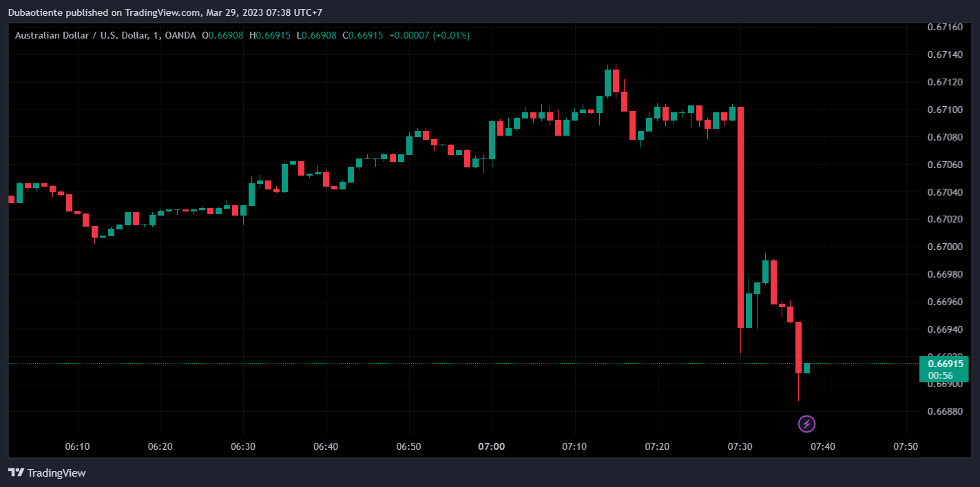 AUDUSD chạm mức đáy trong ngày và hiện đang ở 0.66737