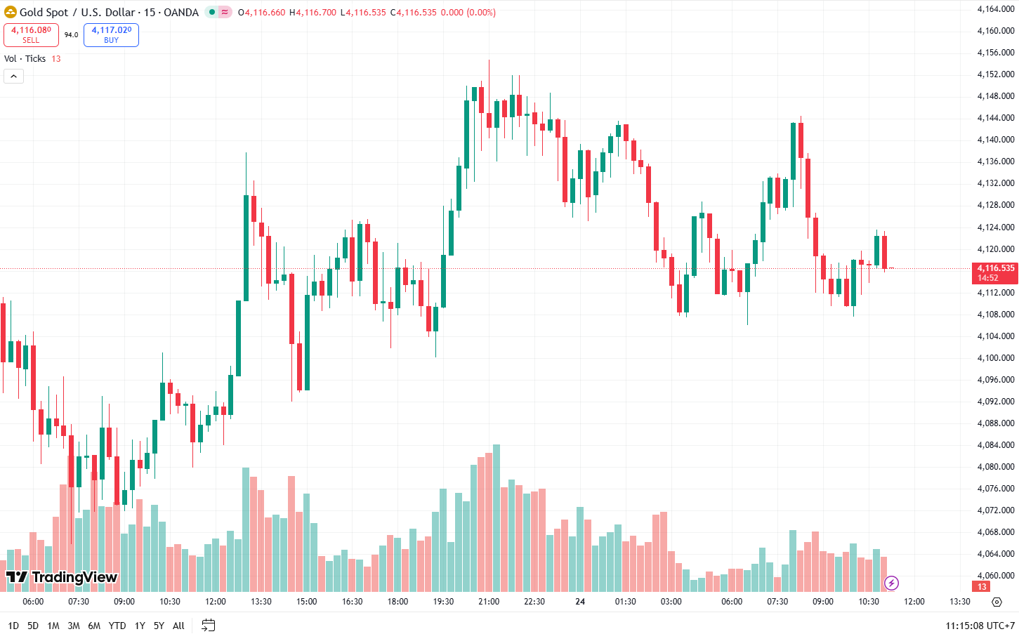 Giá vàng tiếp tục đi ngang quanh 4,116 USD/oz