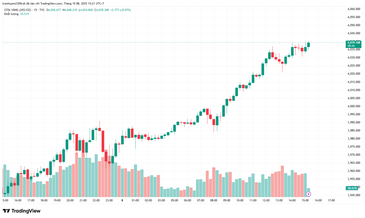 Hôm nay, giá vàng giao ngay (XAU/USD) đã bứt phá qua mốc 4,000 USD/ounce, hiện giao dịch quanh 4,019 USD, bất chấp khả năng chốt lời có thể diễn ra trong ngắn hạn.