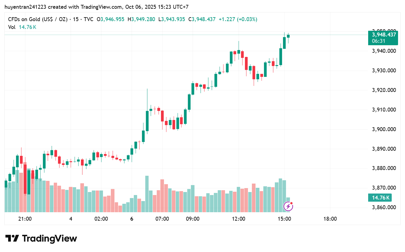 Giá vàng chạm mức 3,950 USD/Oz