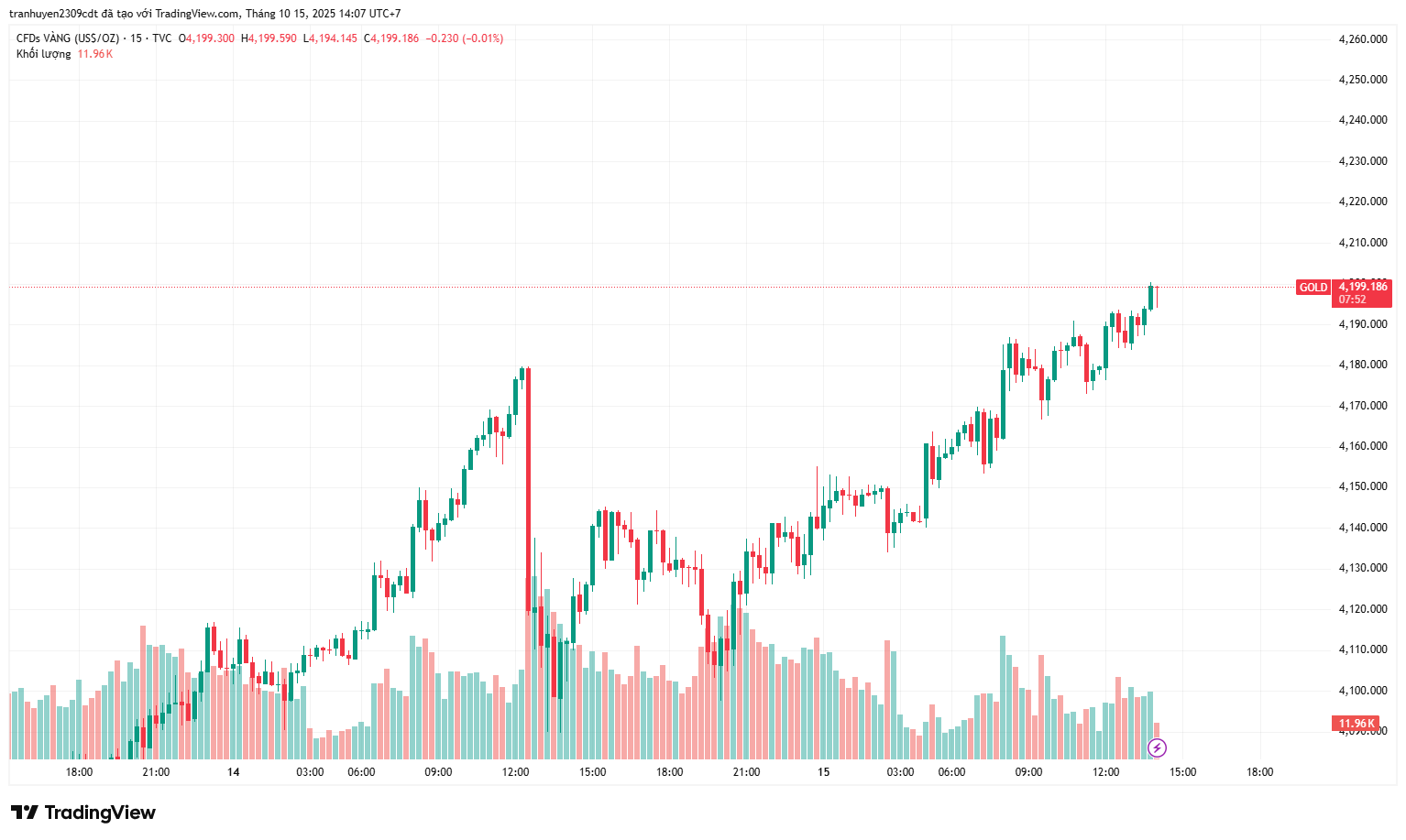 Thị trường ngày 14/10, biểu đồ XAU/USD – khung M15