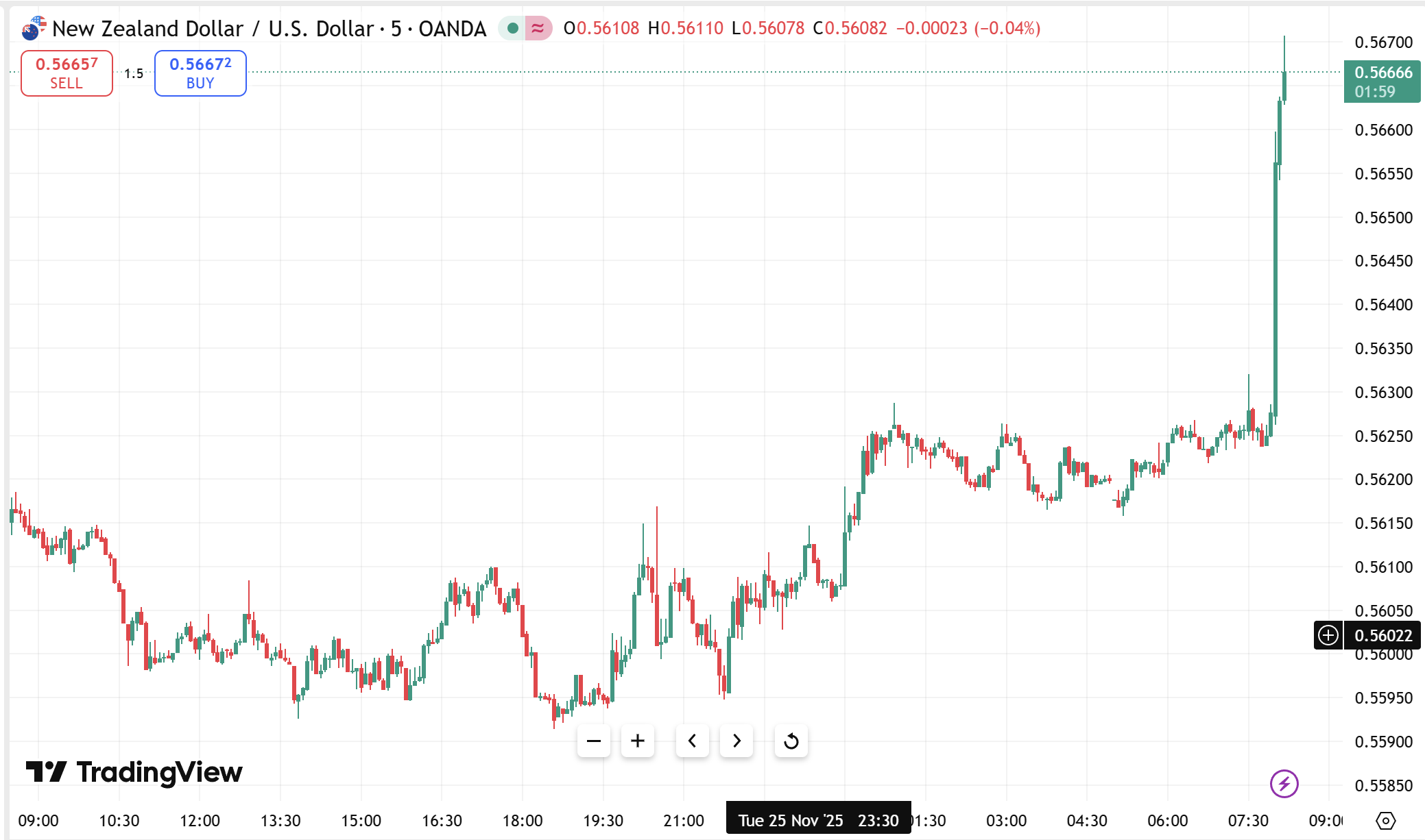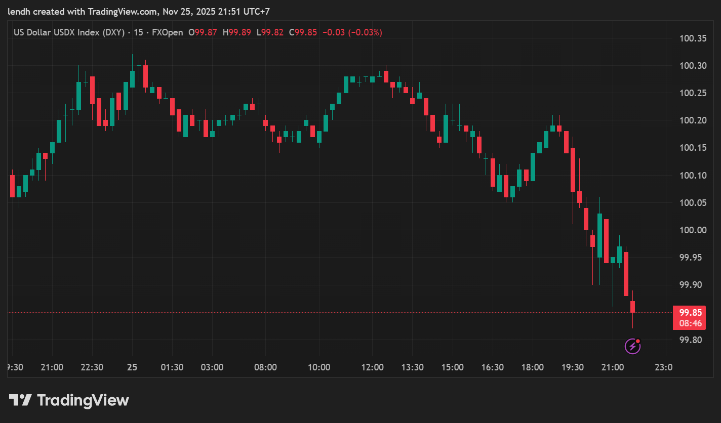Đồng USD suy yếu trên diện rộng trong ngày hôm qua sau khi dữ liệu ADP kém khả quan và thông tin Bloomberg cho biết Hassett nổi lên như ứng viên hàng đầu cho vị trí Chủ tịch Fed. Trước đó, đồng bạc xanh đã chịu áp lực từ việc quan chức Fed Williams ủng hộ cắt giảm lãi suất tháng 12.