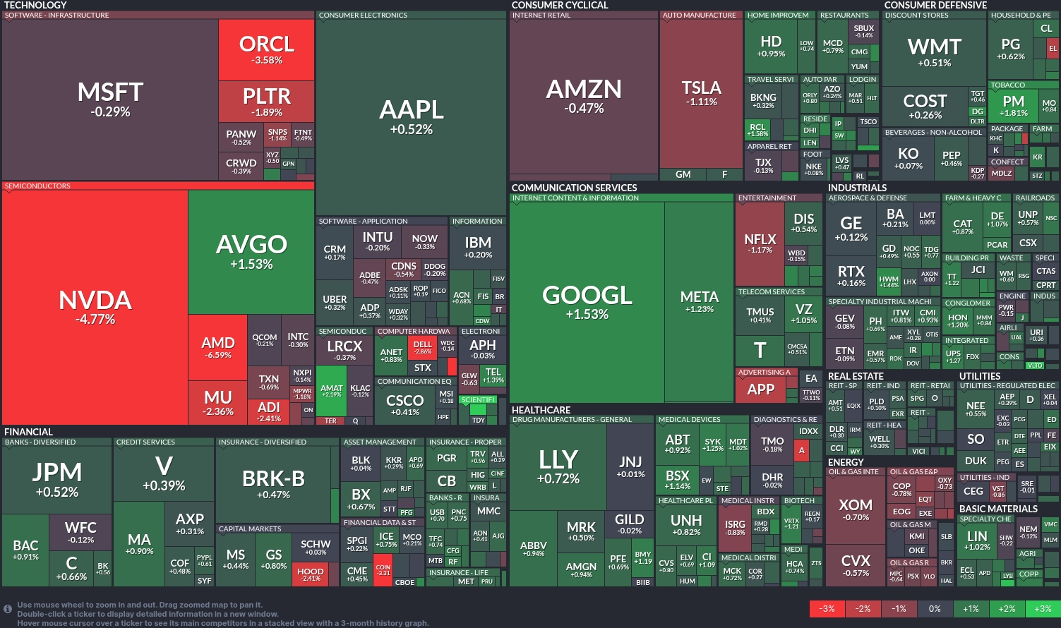 • Google (GOOGL): Ngược lại, Google đã giảm 0,90%, làm nổi bật những lo ngại của nhà đầu tư hoặc động thái chốt lời, giữa bối cảnh tâm lý tích cực rộng lớn hơn trong ngành.