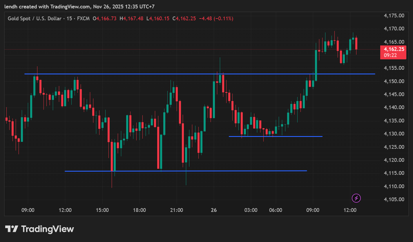 Giá vàng đi ngang 4,160 USD/oz sau khi tăng mạnh lên gần 4,170 USD/oz vào chiều hôm nay. Động lực tăng của vàng được hỗ trợ bởi kỳ vọng Fed cắt giảm lãi suất.