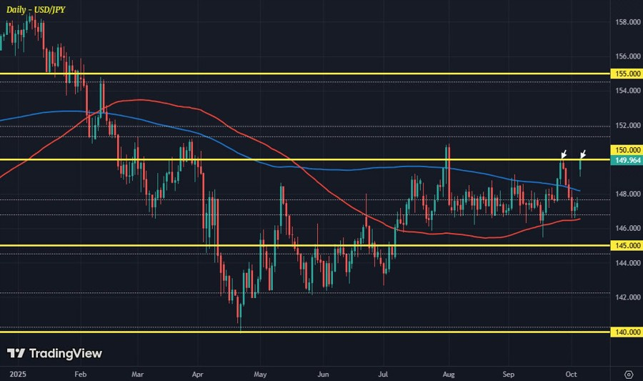 Chỉ số DXY đã tăng trở lại trong phiên thứ Năm trong bối cảnh giới đầu tư đang đánh giá tác động từ việc chính phủ Mỹ đóng cửa. Việc đóng cửa này khiến một số dữ liệu quan trọng bị gián đoạn, trong đó có báo cáo việc làm hàng tháng cho tháng 9 vốn dự kiến công bố vào thứ Sáu. Tuy vậy, khoảng trống thông tin có thể không nghiêm trọng như lo ngại, bởi các số liệu từ Cục Dự trữ Liên bang cùng các tổ chức tư nhân vẫn được phát hành. Trong khi đó, đồng bảng Anh gần như đi ngang, khó khăn trong việc tăng giá trước đồng USD, khi các nhà giao dịch bắt đầu tính toán tác động từ ngân sách tháng 11 sắp tới của Vương quốc Anh. Bộ trưởng Tài chính Rachel Reeves dự kiến công bố bản ngân sách thường niên sau tám tuần nữa, và bà sẽ phải cố gắng vừa duy trì các mục tiêu tài khóa, vừa cân nhắc rằng việc tăng thuế có thể làm trầm trọng thêm tình trạng mong manh của nền kinh tế. Cùng thời điểm, một khảo sát từ Ngân hàng Trung ương Anh công bố hôm thứ Năm cho thấy các doanh nghiệp trong nước có ý định tuyển dụng yếu nhất kể từ năm 2020, đồng thời kỳ vọng lạm phát tiêu dùng sẽ tăng nhanh nhất kể từ đầu năm 2024. Điều này khiến nhà đầu tư càng chú ý hơn đến cách BoE sẽ phản ứng, trong bối cảnh thị trường tiền tệ hiện dự báo cơ quan này sẽ cắt giảm lãi suất hai lần trong năm tới.
