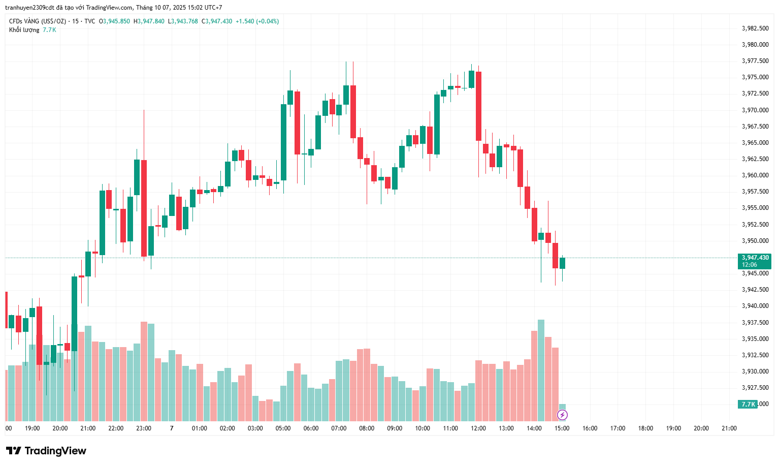 Giá vàng gặp khó trong việc duy trì đà tăng nhẹ ở phiên châu Á, hiện gia dịch quanh mức 3,950 USD/Oz dù trước đó đã chạm mức đỉnh mọi thời đại mới. Sự phục hồi của đồng USD cùng tâm lý lạc quan trên thị trường rủi ro đang kìm hãm đà tăng của kim loại quý này trong bối cảnh thị trường vẫn đang ở trạng thái mua quá mức.