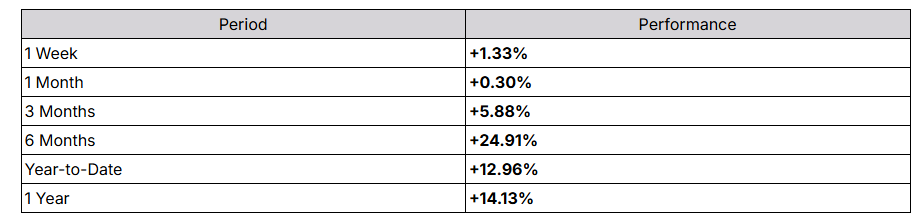 Hiệu suất của chỉ số vẫn kiên cường trên cơ sở nhiều tháng, với mức tăng gần 25% trong sáu tháng qua, nhấn mạnh khẩu vị rủi ro mạnh mẽ được duy trì trong phần lớn năm 2025 bất chấp sự biến động lặp đi lặp lại.