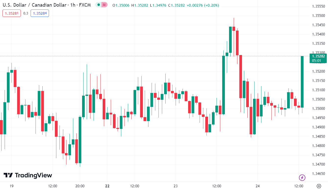 USDCAD tiếp tục tăng trong bối cảnh USD suy yếu nhẹ, hiện đang ở mức 1.35282.