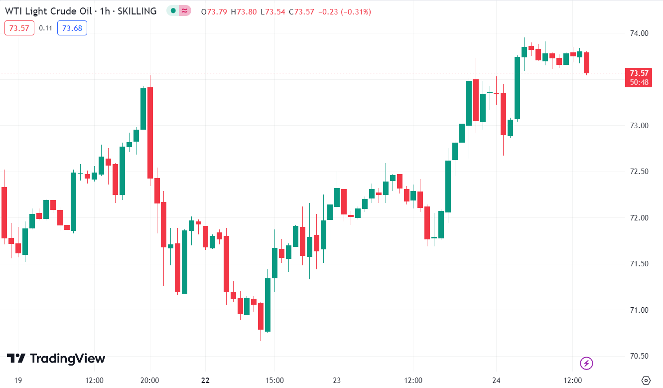 Dầu thô WTI giảm nhẹ, hiện đang dao động quanh mức $73.57/thùng.