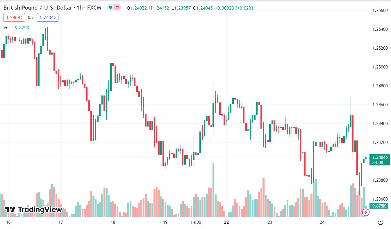 GBPUSD hiện ở 1.2405 sau khi Thống đốc BoE Bailey tiếp tục khẳng định quyết tâm chống lạm phát của BoE trong bài phát biểu đang diễn ra.