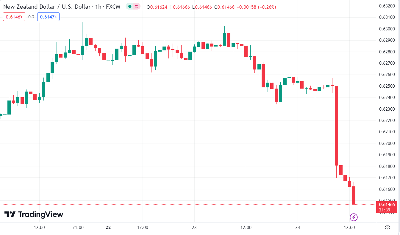 Cập nhật thị trường: NZDUSD tiếp tục giảm sâu xuống dưới mức 0.61500