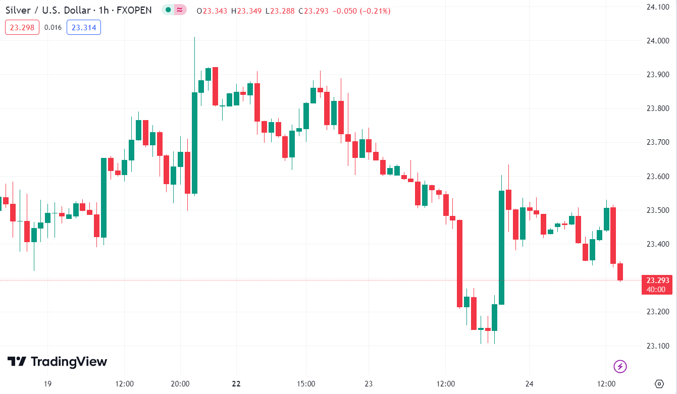 Bạc tiếp tục giảm trong phiên, hiện đang ở mức $23.293.