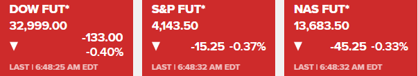 Hợp đồng tương lai S&P 500 hiện đang giảm 7 điểm, tương đương 0.17%. Nhưng sự thể hiện tồi tệ trên thị trường chứng khoán châu Âu có liên quan nhiều đến những tổn thất nặng nề mà Phố Wall phải gánh chịu ngày hôm qua.