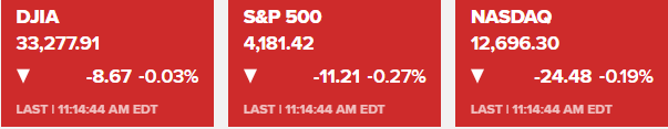 Chứng khoán giảm điểm khi các cuộc đàm phán về việc trần nợ của Mỹ vẫn đi vào bế tắc. Chủ tịch Hạ viện Kevin McCarthy cho biết ông đã có một cuộc thảo luận hiệu quả với Tổng thống Biden vào thứ Hai. Tuy nhiên, có rất ít dấu hiệu cho thấy tiến trình đạt được bước tiến mới trong các cuộc đàm phán vào thứ Ba. Chỉ số S&P 500 có phiên giảm sâu nhất trong gần 3 tuần trở lại đây:
