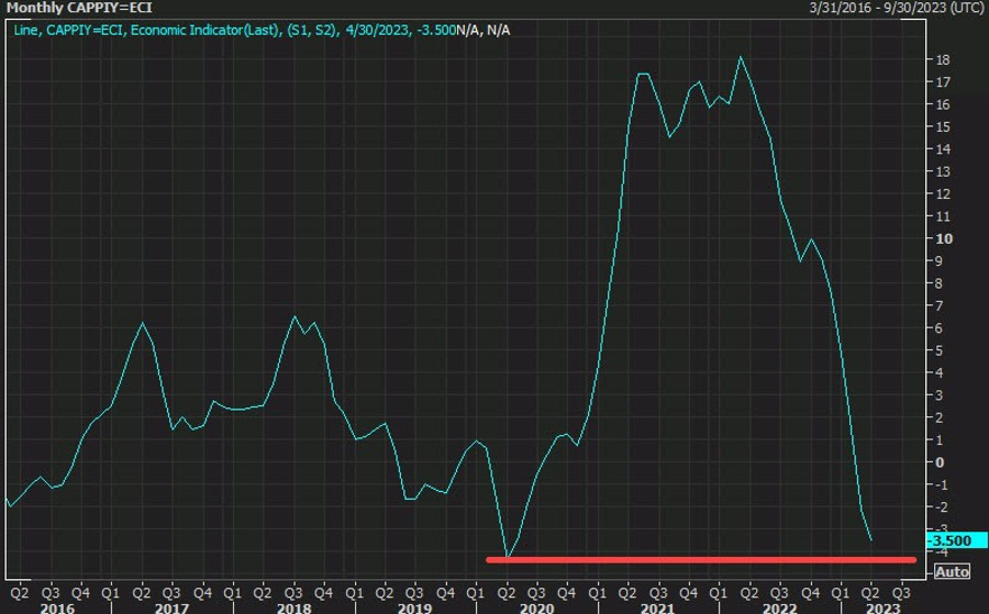 Tốc độ tăng trưởng của chỉ số dẫn dắt vẫn nằm trong vùng âm ở mức -0.78%