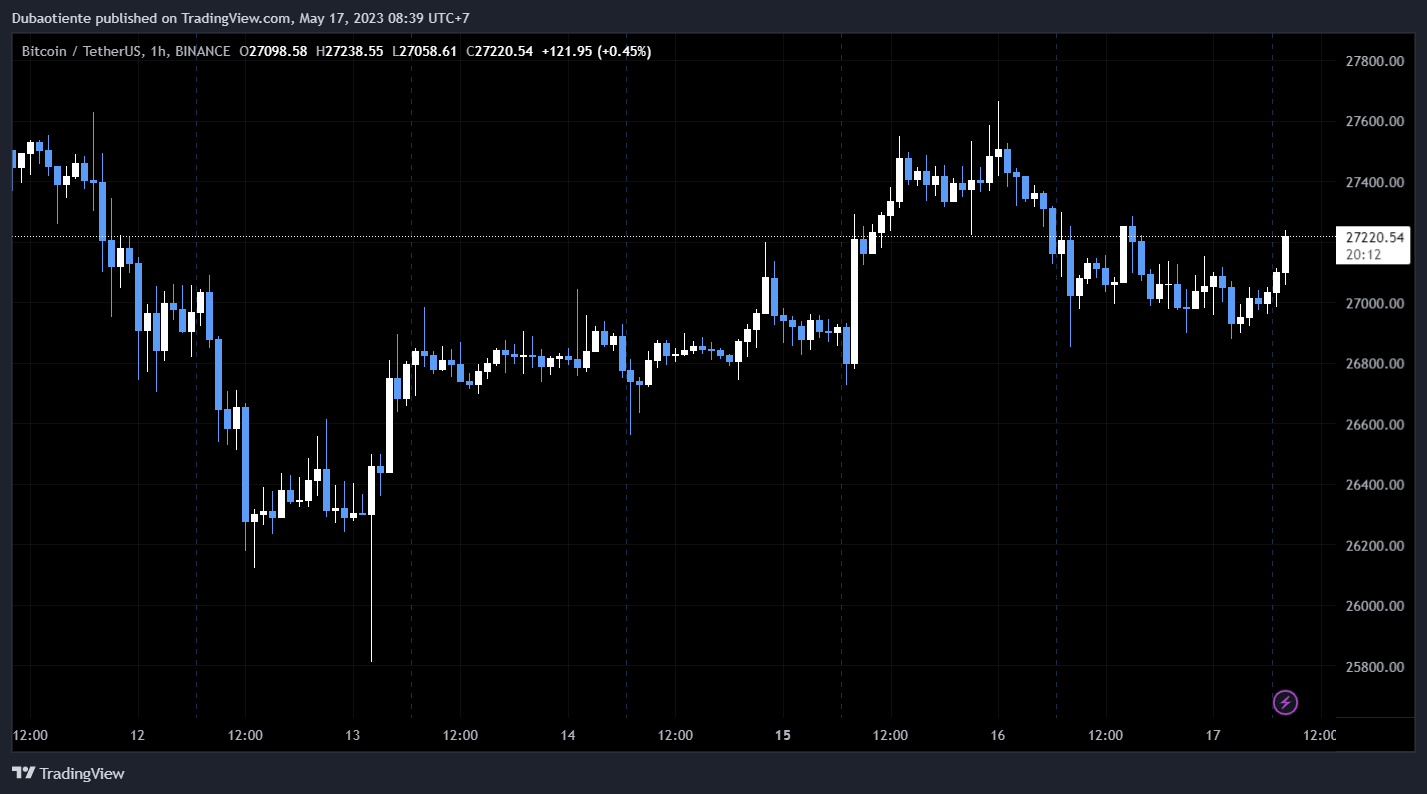 Chứng khoán chịu áp lực về cuối phiên khi thị trường thêm lo ngại rằng các nhà lãnh đạo Hoa Kỳ khó đạt được một thỏa thuận chung nhằm ngăn chặn khả năng vỡ nợ vào đầu tháng 6. Trong bối cảnh đó, Lãnh đạo Hạ viện Mc.Carthy đã lên tiếng trấn an rằng dù vẫn còn nhiều khác biệt trong lập trường, xong có thể sẽ đạt được thêm bước tiến mới vào cuối tuần này. Ngoài ra, doanh số bán lẻ tháng 4 tại Hoa Kỳ không như kỳ vọng, mặc dù có dấu hiệu phục hồi cũng đã làm xói mòn tâm lý thị trường (+0.4% so với dự báo +0.8%, trước đó -0.7%). Chỉ số Dow Jones giảm hơn 330 điểm: