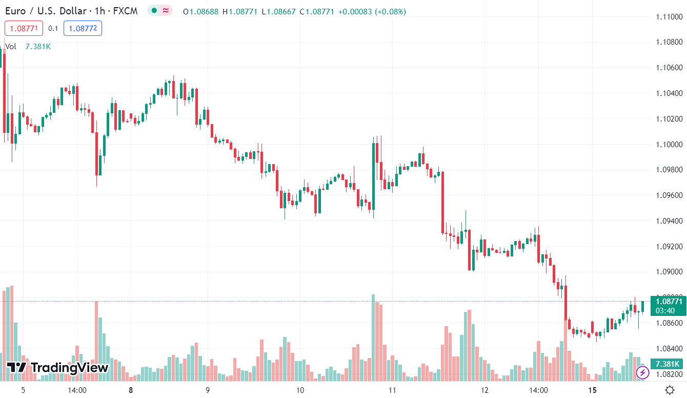 EUR/USD hồi phục nhẹ sau dữ liệu từ Đức và hiện ở mức 1.0868.