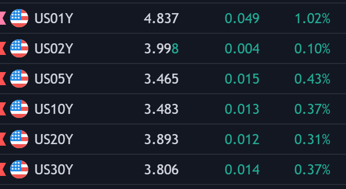 Lợi suất TPCP Hoa Kỳ đồng loạt tăng trên khắp các kỳ hạn, bên cạnh đó đồng bạc xanh duy trì quanh mức 102.500 trong phiên.