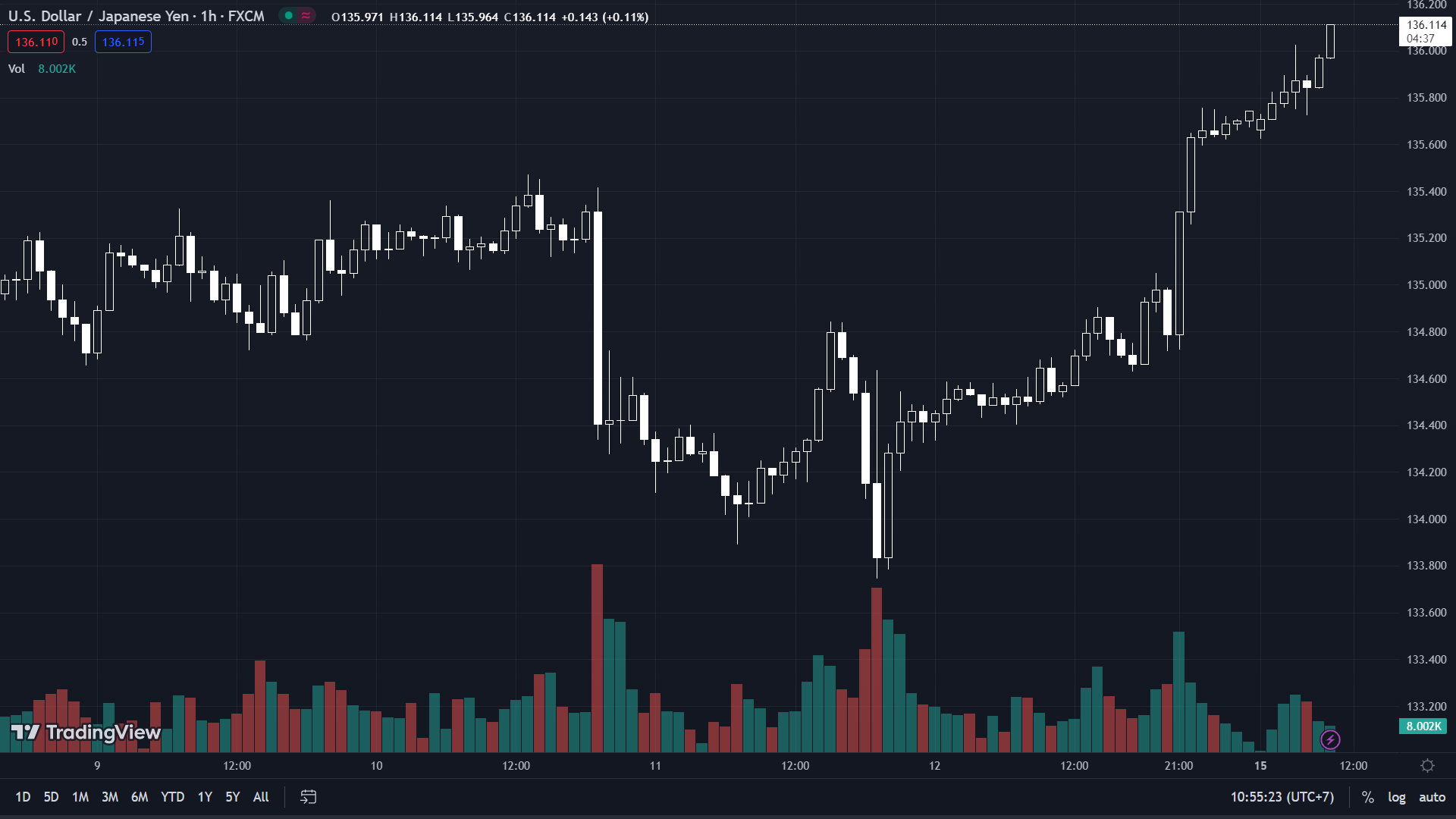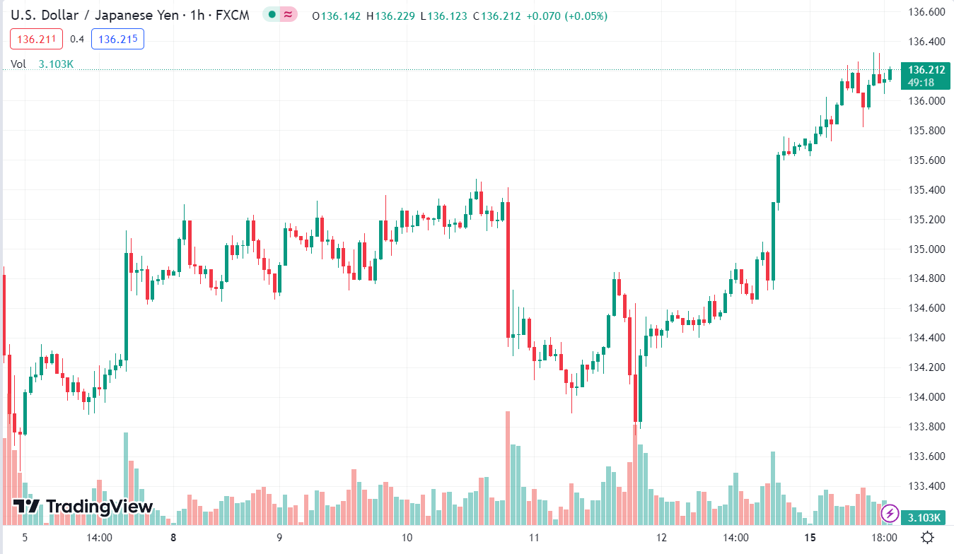 USD/JPY vẫn đang giữ đà tăng và hiện đã vượt 136.100.