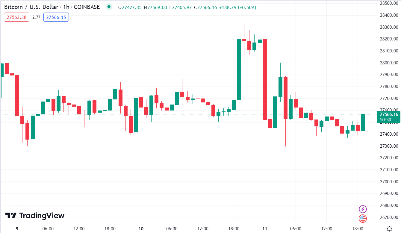 BTC break qua đáy tháng 4 trong đêm và hồi nhẹ lại vùng 26.9K.