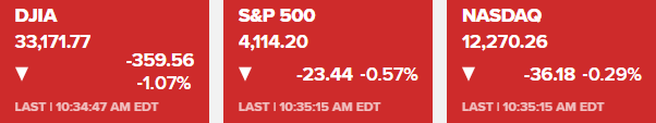 Chứng khoán Mỹ đóng cửa trái chiều khi thị trường tiêu hóa báo cáo trợ cấp thất nghiệp vượt dự kiến cùng với chỉ số giá sản xuất thấp hơn kỳ vọng trong tháng 4. Cụ thể, PPI +0.2% (dự báo +0.3%) trong khi số đơn xin trợ cấp đạt 264K (dự báo 245K) - mức đỉnh kể từ tháng 12 năm 2020. Ngoài ra, nỗi lo về sức khỏe của ngành ngân hàng và trần nợ Hoa Kỳ tiếp tục làm xói mòn tâm lý thị trường. Đáng chú ý, cổ phiếu của PacWest đóng cửa -22.7%, chứng chỉ quỹ ETF của ngân hàng khu vực -2.48% (mức giảm nhiều nhất từ đầu tuần). Cuộc họp của Tổng thống Biden với các nhà lãnh đạo Quốc hội về trần nợ diễn ra vào hôm nay đã bị hoãn lại. Chỉ số Dow Jones có phiên giảm điểm thứ 04 liên tiếp: