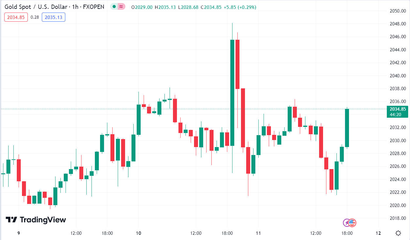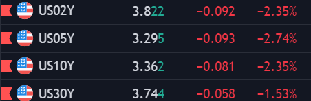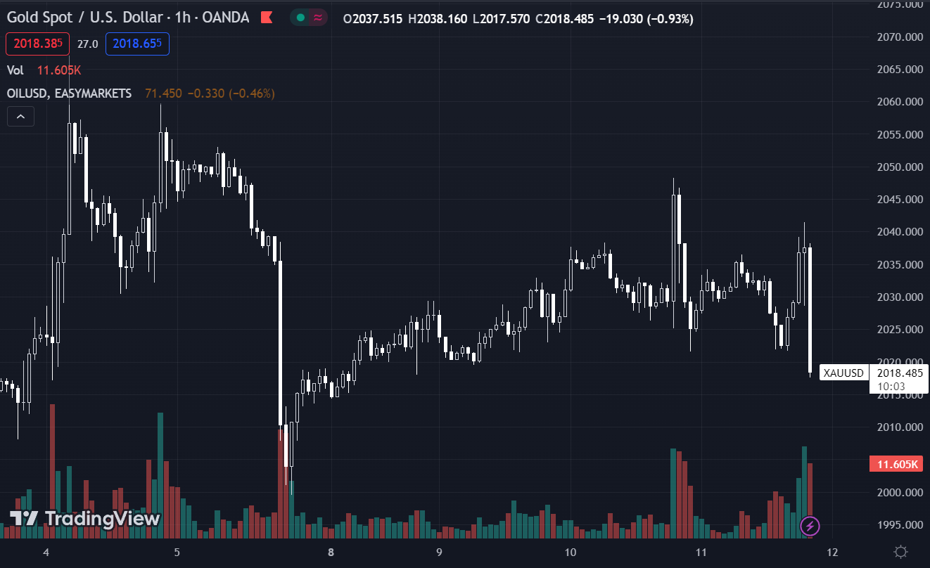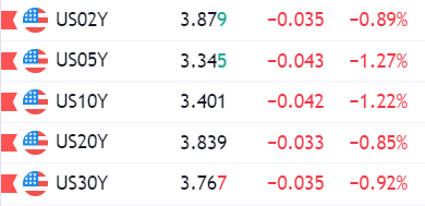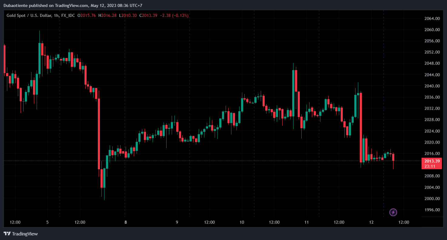 Vàng lao dốc xuống gần $2011/oz, chịu áp lực trước đà tăng của USD đầu phiên Mỹ. Chốt phiên, vàng giảm $14.5/oz xuống $2014.90/oz. Lợi suất 2 năm và 10 năm lần lượt giảm 1.3bp và 5.5bp xuống 3.901% và 3.388%. Dầu WTI giảm $1.69 xuống $70.87/thùng.