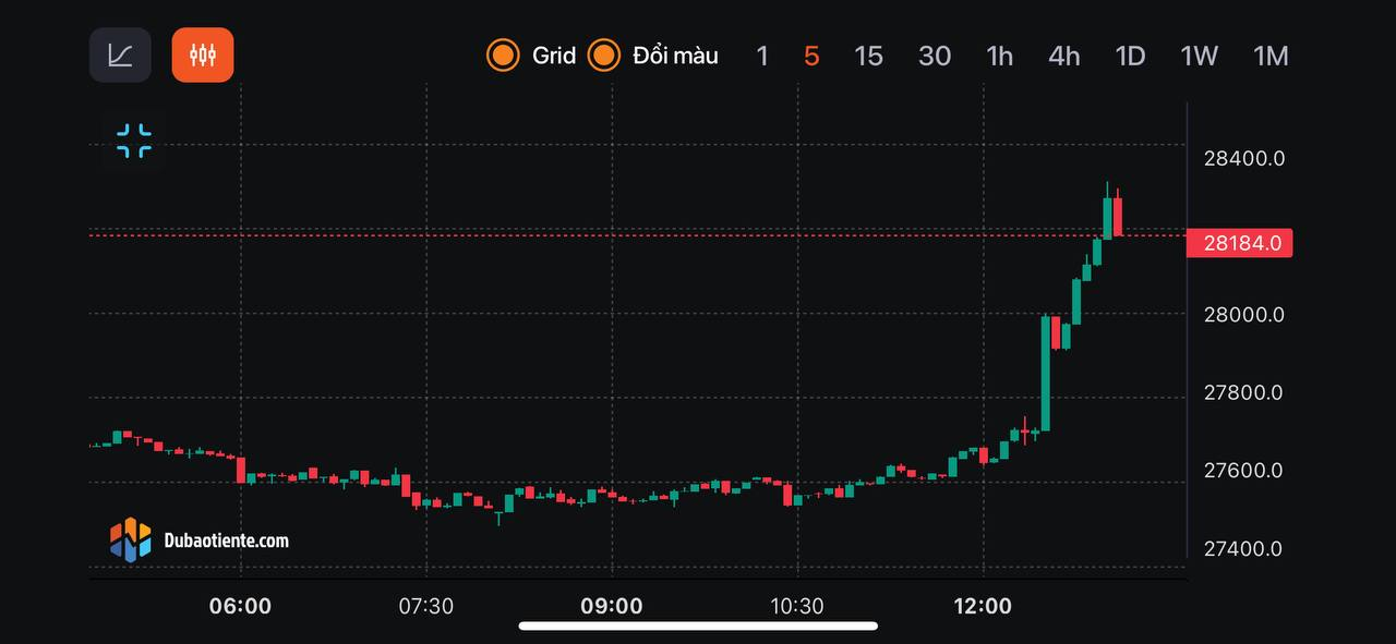 Nếu hôm nay tiếp tục tăng, thì đây sẽ là phiên tăng thứ 5 liên tiếp. Trước đó, thị trường có chuỗi 9 phiên tăng liên tục, chỉ bị ngắt bởi một phiên giảm nhẹ vào ngày 9/5. Từ 21/4 đến nay, thị trường chỉ ghi nhận một phiên giảm duy nhất.