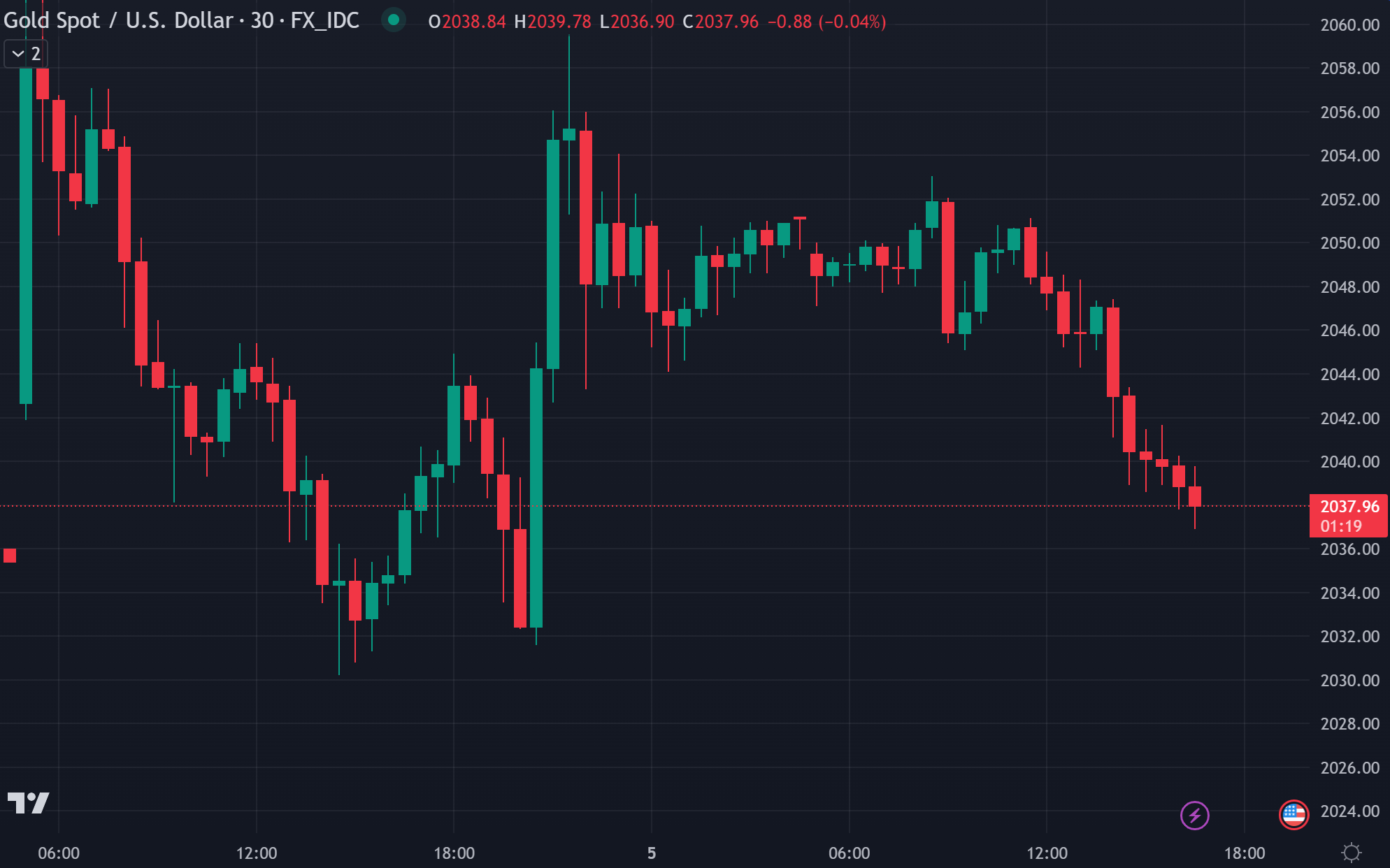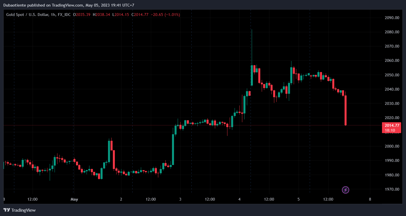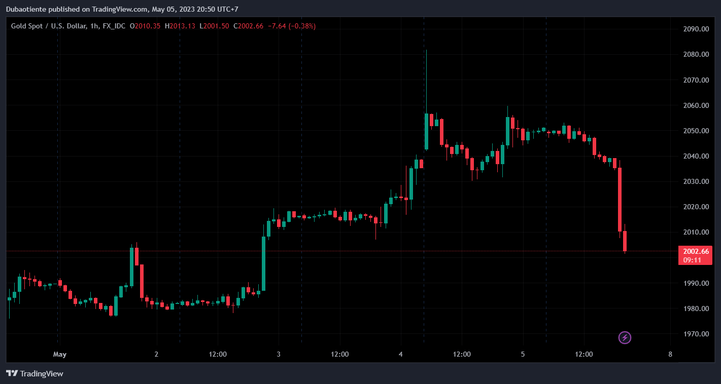 Giá vàng giao ngay hiện đang giảm xuống mức thấp nhất ngày, dao động trên mức $2,000