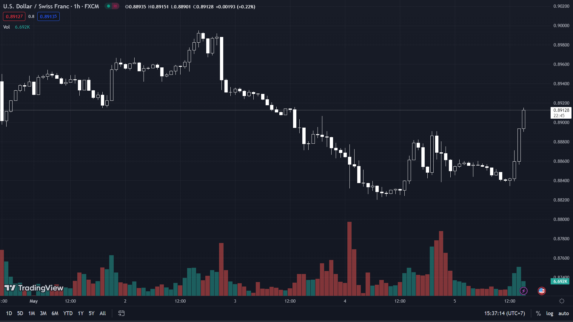 USD/CHF tiếp tục tăng trong phiên Âu, hiện ở mức 0.89128.