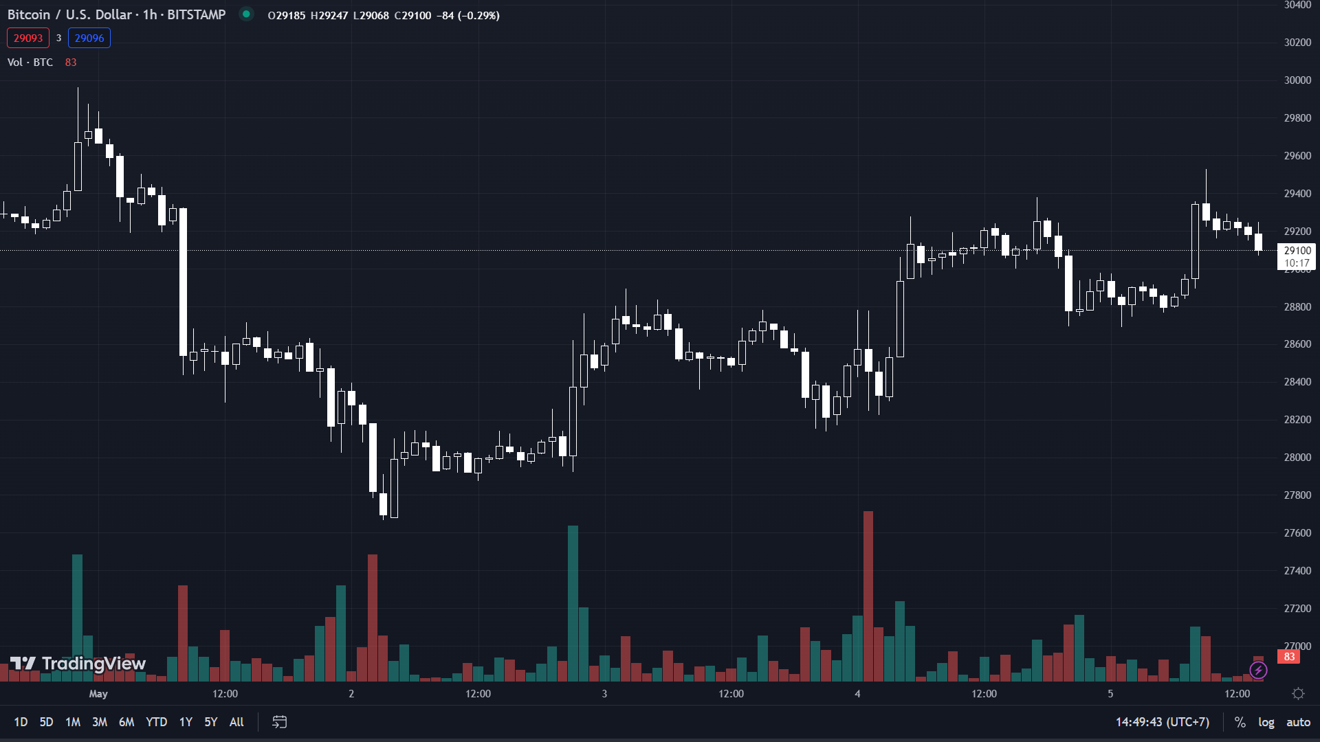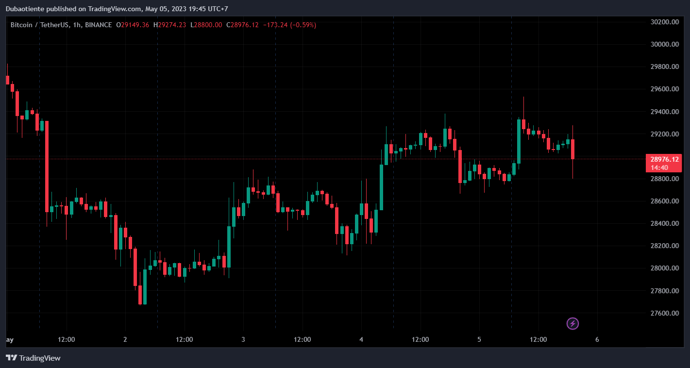 Bitcoin giảm xuống 29,100 USD trong ngày.