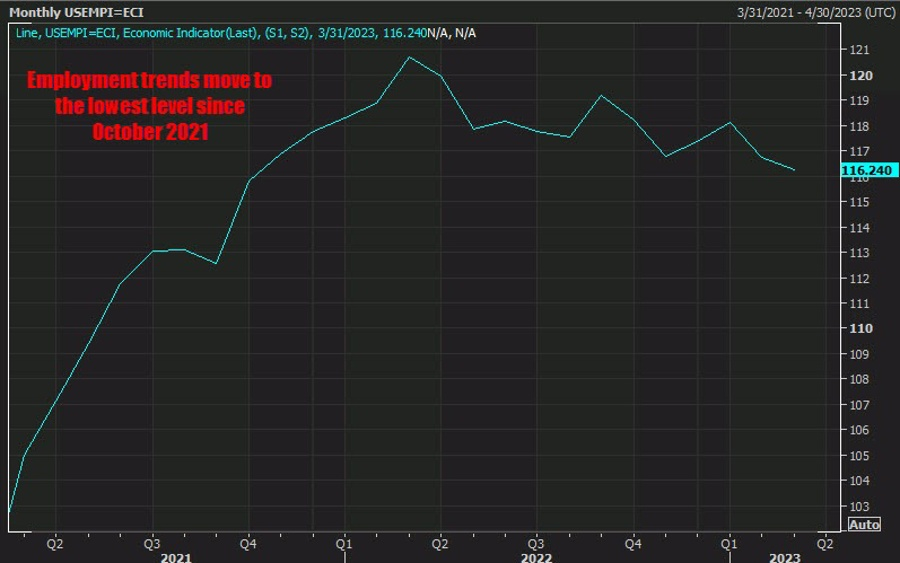 Thị trường đang tiêu hóa tin NFP. USD thể hiện sức mạnh với hầu hết các đồng tiền chính bất chấp lợi suất TPCP Mỹ giảm trở lại. Điều này khiến vàng sụt giảm mạnh mẽ, hiện giằng co quanh $1,990. JPY suy yếu trong bối cảnh thị trường chờ đợi bài phát biểu đầu tiên của Tân Thống đốc BOJ Ueda