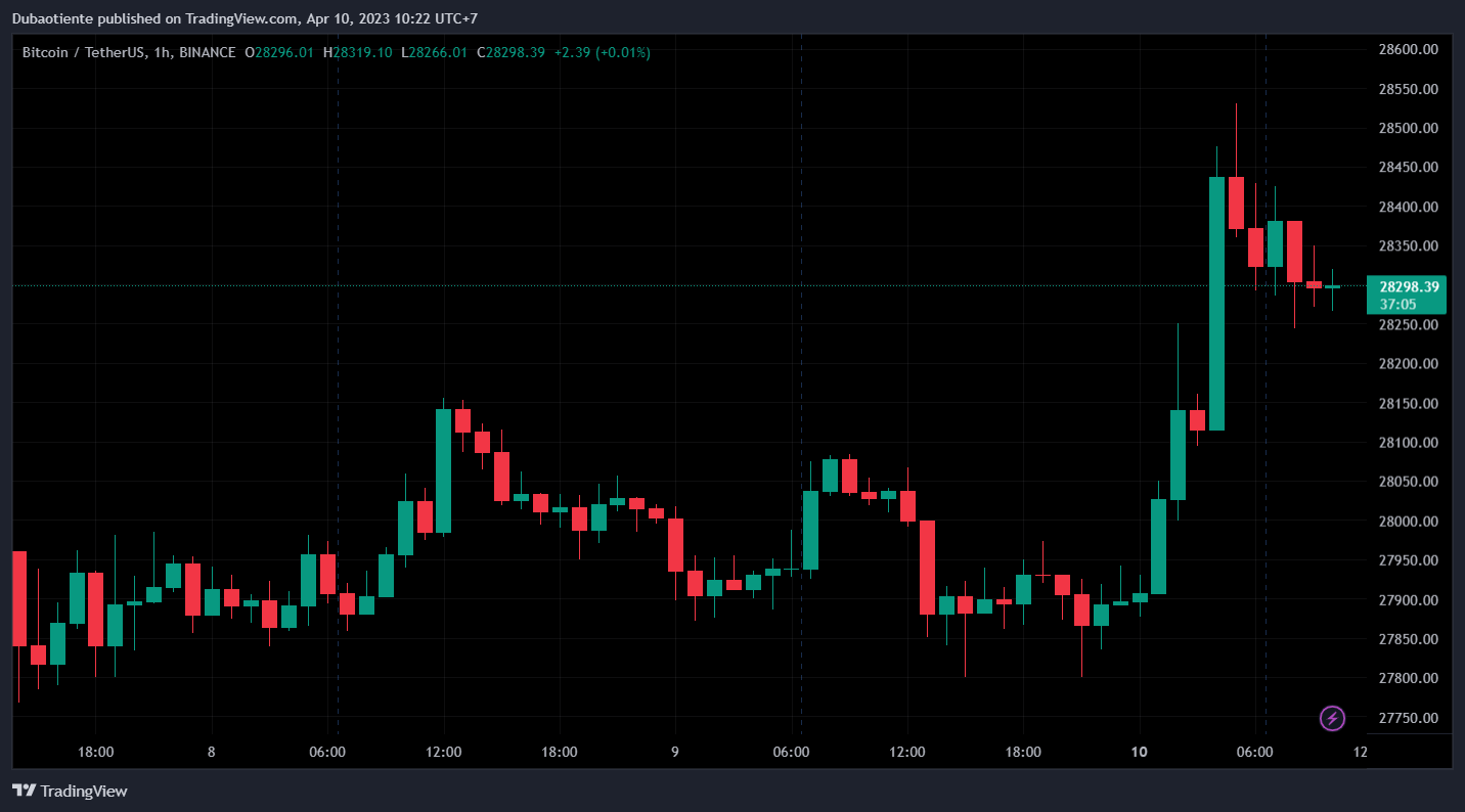 Sáng sớm ngày giao dịch hôm thứ Hai đầu tuần, bitcoin từ dưới 27.8K đã tăng vọt lên hơn 28.5K nhưng một phần gap tăng đã được lấp lại. Hiện đồng tiền điện tử này đang giao dịch quanh mức 28.2K