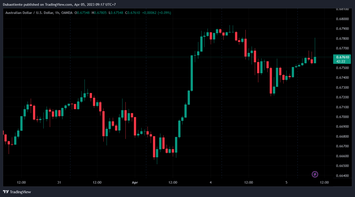 AUD tăng lên mức cao mới (đạt 0.6780), nhưng sau đó đã thoái lui về quanh mức 0.6761 trong khi chờ đợi bài phát biểu của thống đốc RBA Lowe.