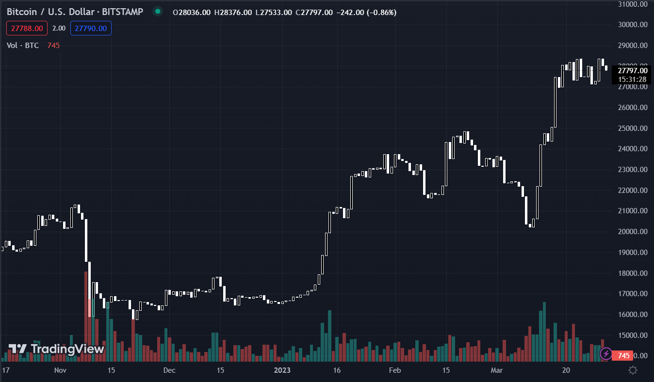 Các chỉ số chứng khoán chốt phiên tăng nhẹ khi thị trường nhận định cuộc khủng hoảng trong hệ thống ngân hàng đã qua đi, trong bối cảnh bài phát biểu của các nhà hoạch định chính sách Fed hôm qua đều nhấn mạnh tầm quan trọng của cuộc chiến chống lạm phát. Dẫn đầu là chỉ số Dow Jones với hơn 140 điểm. Đáng chú ý, trong phiên giao dịch hôm thứ Năm chỉ số Nasdaq đã có lúc đạt đỉnh kể từ ngày 16/2 đến nay, sau đó kết phiên ở gần mức mở cửa trong ngày khi tăng hơn 87 điểm.