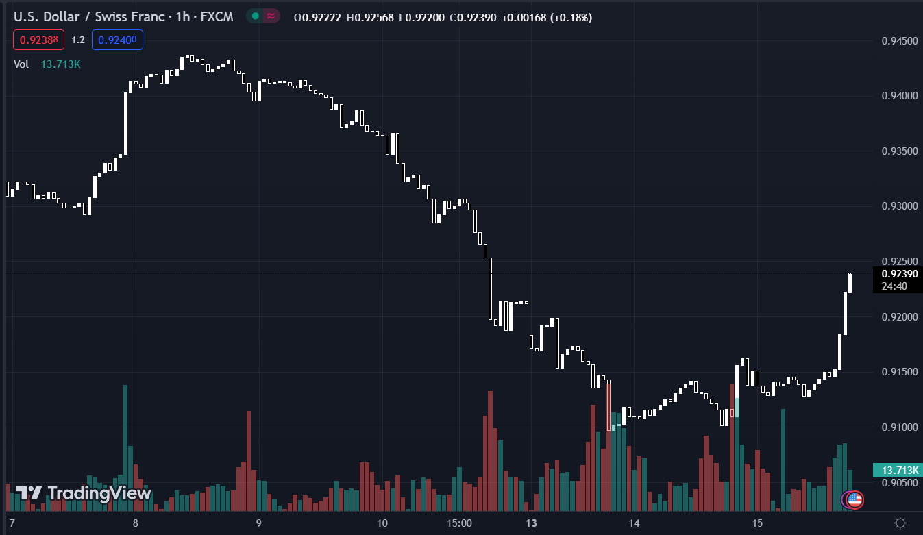 - USD/CHF tăng từ 0.9150 lên 0.9260, trước khi ổn định quanh mức 0.9215.