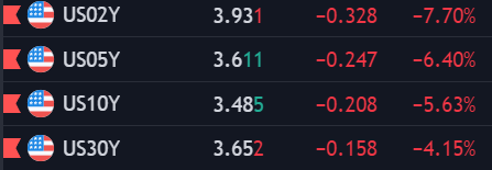 - Lợi suất trái phiếu 10 năm của Mỹ giảm 11 điểm cơ bản xuống 3.526%