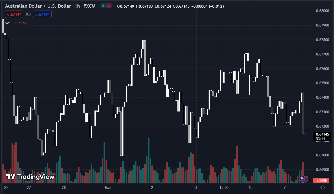 AUD/USD giảm xuống mức thấp nhất trong hai tháng