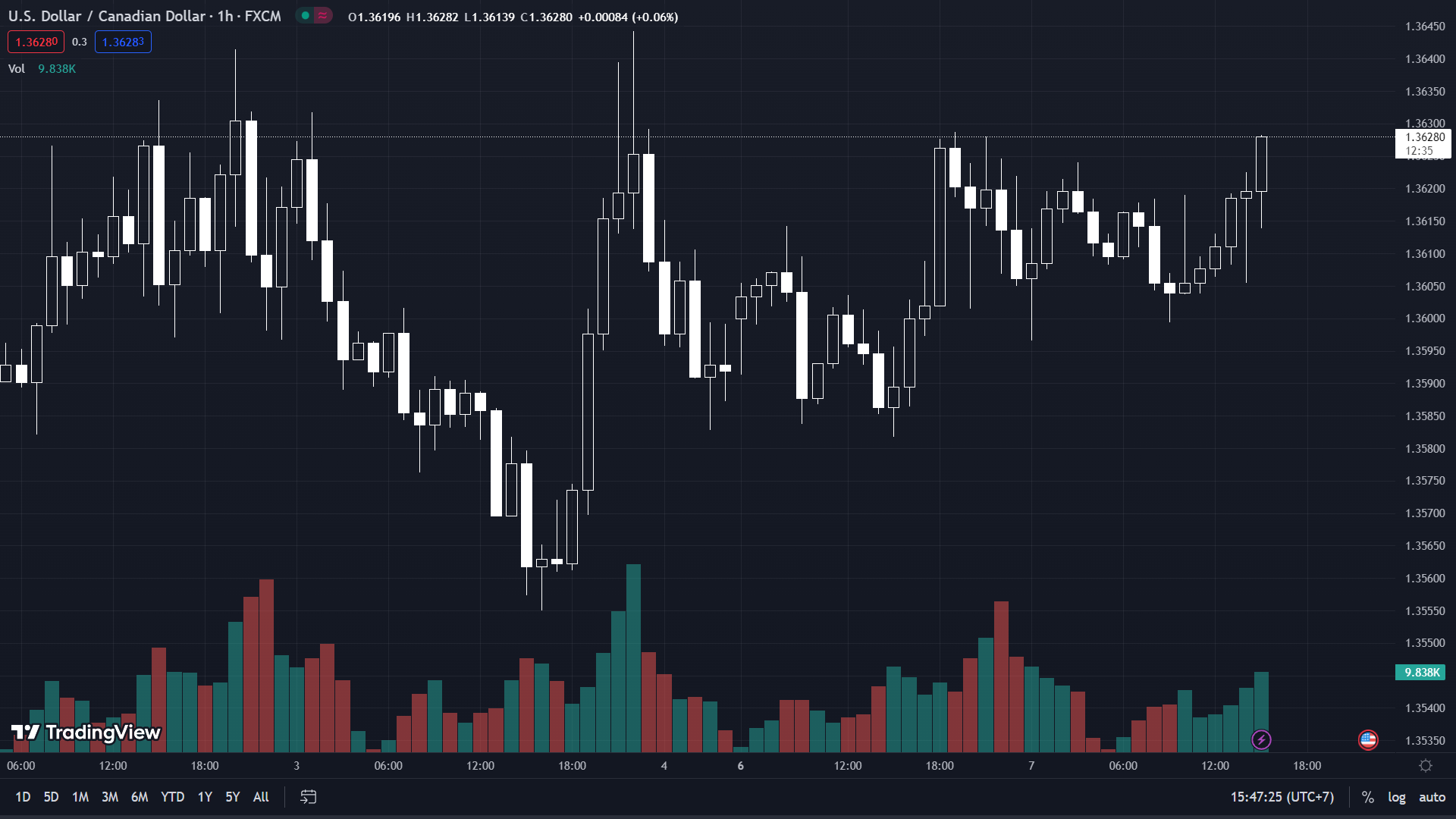 USD/CAD tăng bền vững trong ngày và hiện ở mức 1.36280.