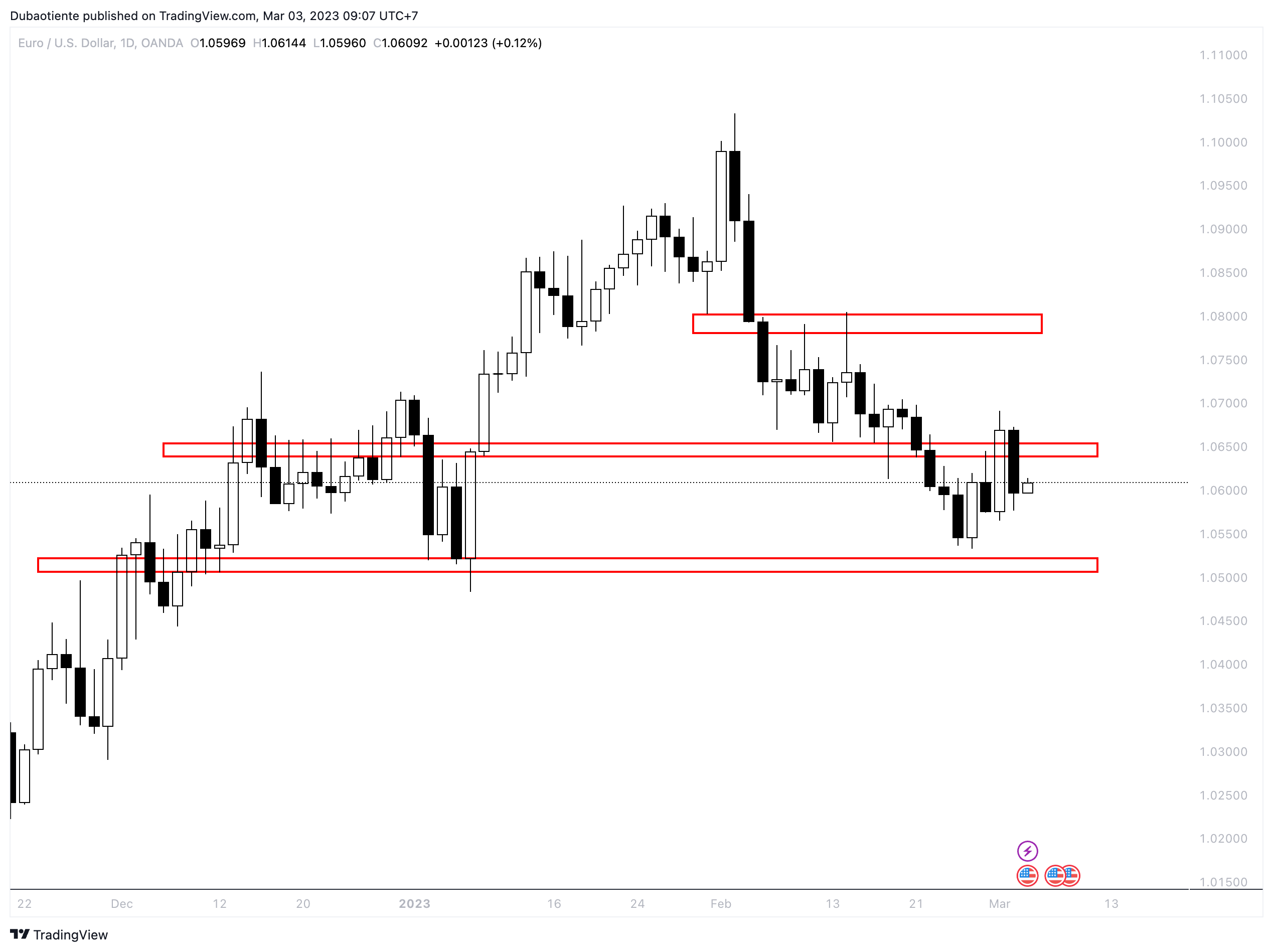 Lợi suất trái phiếu kho bạc kỳ hạn 30 năm của Hoa Kỳ cũng đã nhanh chóng vượt qua mốc 4% vào ngày hôm qua - lần đầu tiên kể từ tháng 11 - nhưng hiện ở mức 3.98%. USD chủ yếu được hỗ trợ bởi lợi suất cao hơn vào ngày hôm qua nhưng gap tăng đã bị san lấp sau khi thị trường chứng khoán quay đầu. Cần lưu ý dữ liệu PMI dịch vụ tháng 2 do ISM công bố trong tối nay. Hiện tại, lợi suất kỳ hạn 10 năm giảm 1.2 bps xuống 4.05%: