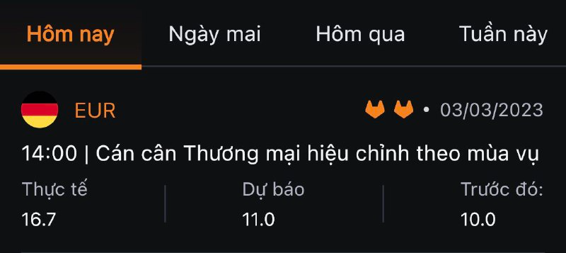 • 14:00: Dữ liệu cán cân thương mại tháng 1 của Đức