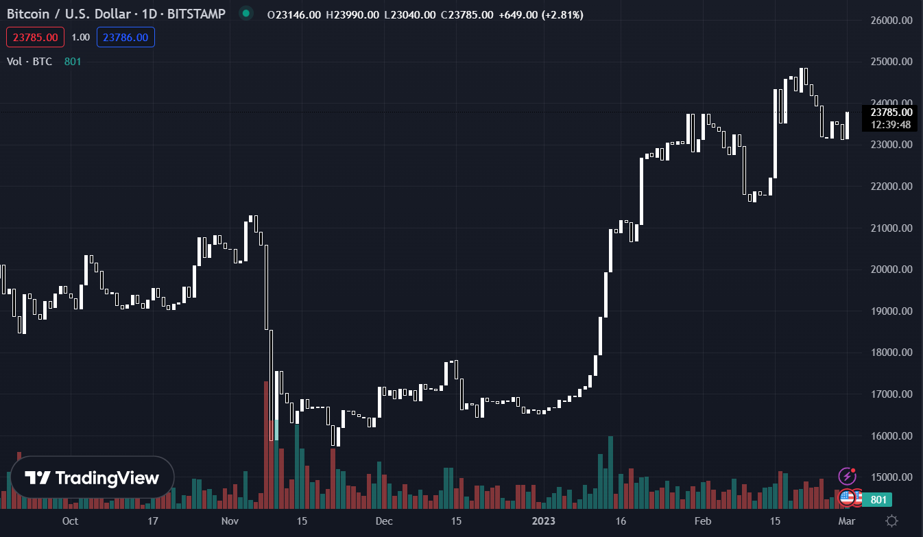Bitcoin tăng gần 3%, chạm mức $23,785