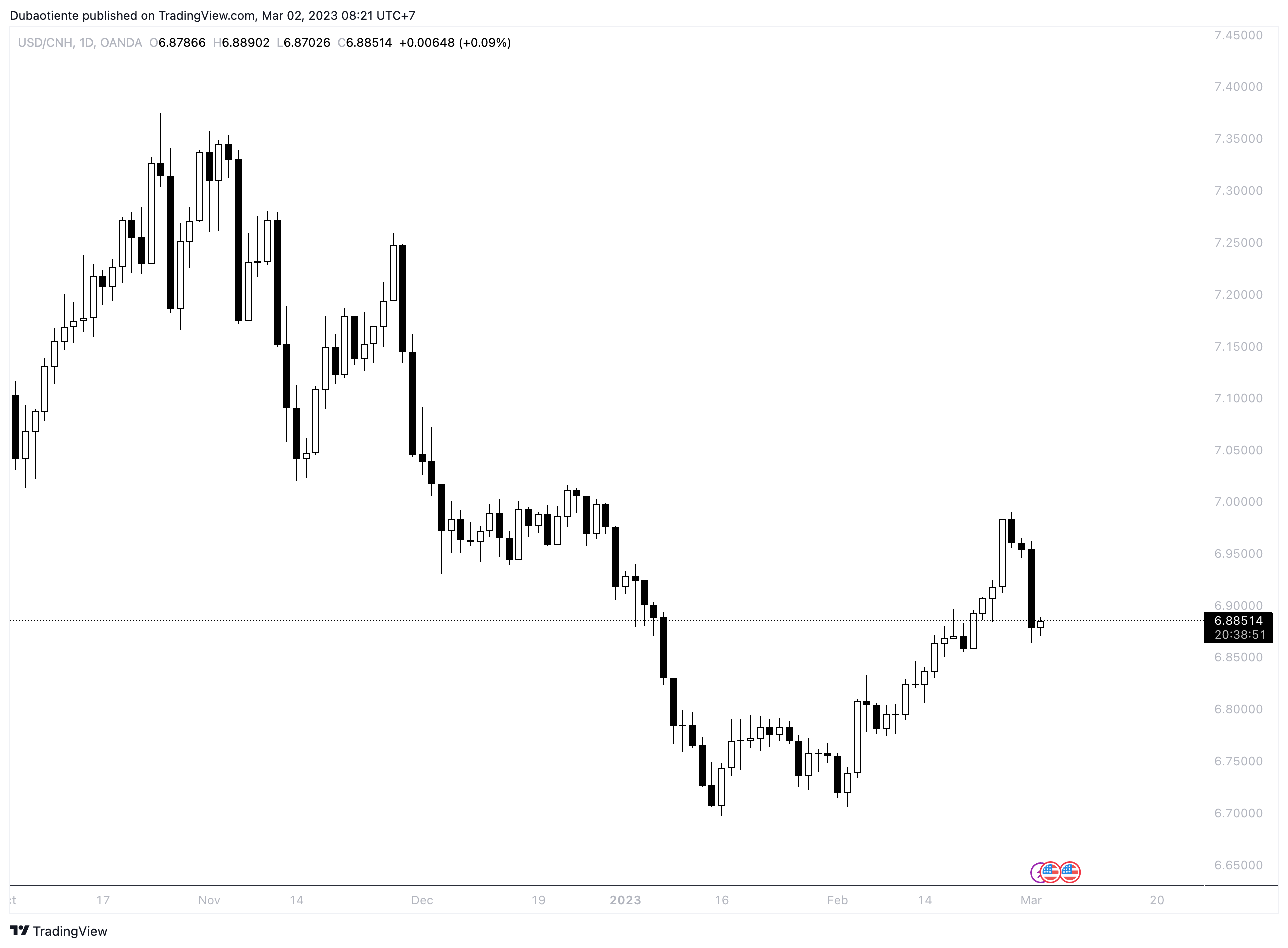 Giá đóng cửa hôm qua là 6.8729