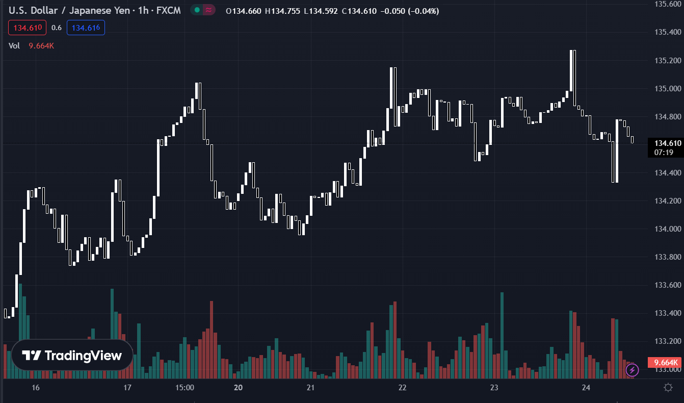 Có hai hợp đồng quyền chọn USD/JPY đáo hạn đáng chú ý hôm này tại 134.50 và 135.00 lần lượt trị giá 1.6 tỷ và 1.1 tỷ USD.