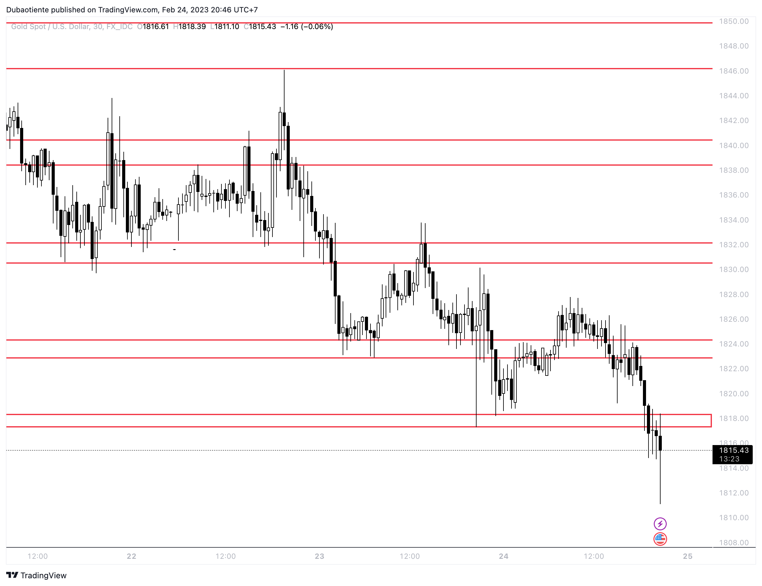 XAUUSD tiếp tục giảm sâu trước giờ công bố dữ liệu PCE lõi, hiện ở $1,815.40.