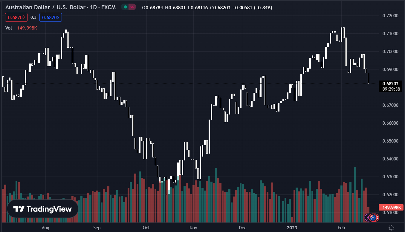 Sau khi chạm mức thấp nhất kể từ giữa tháng 1 (dưới 0.6850) trong bối cảnh USD thể hiện sức mạnh với các loại tiền tệ chính, AUDUSD tiếp đà giảm khi hiện ở 0.6820