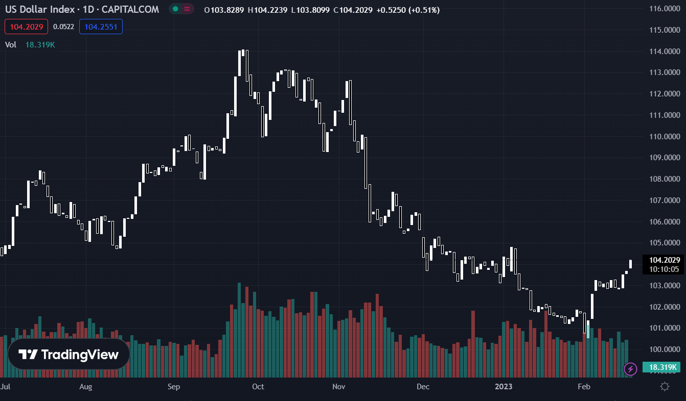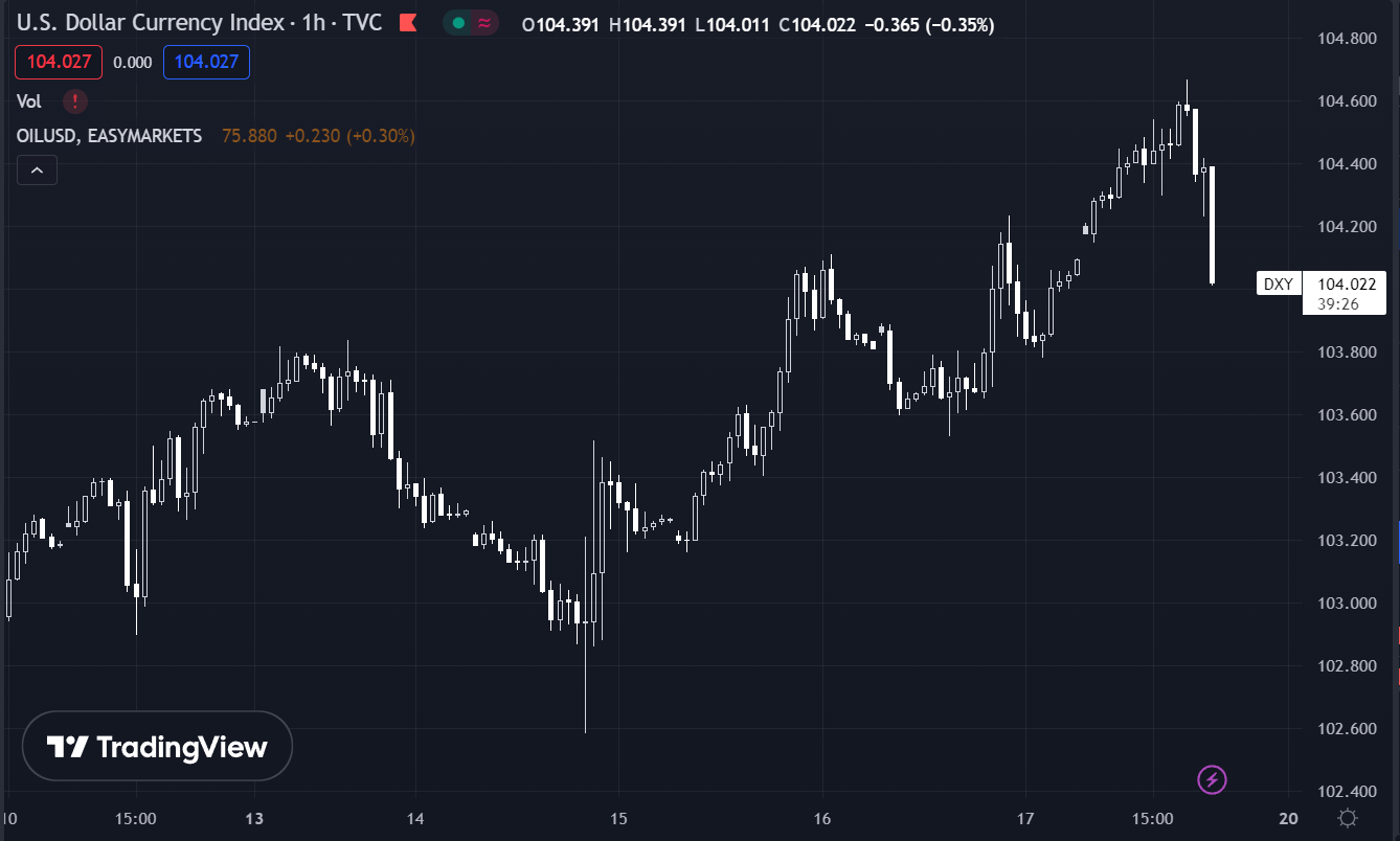 Chỉ số DXY rơi vào đà giảm, hiện ở ngưỡng 104.022
