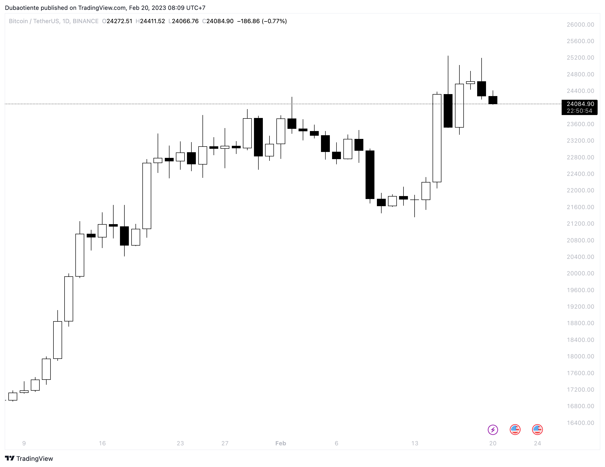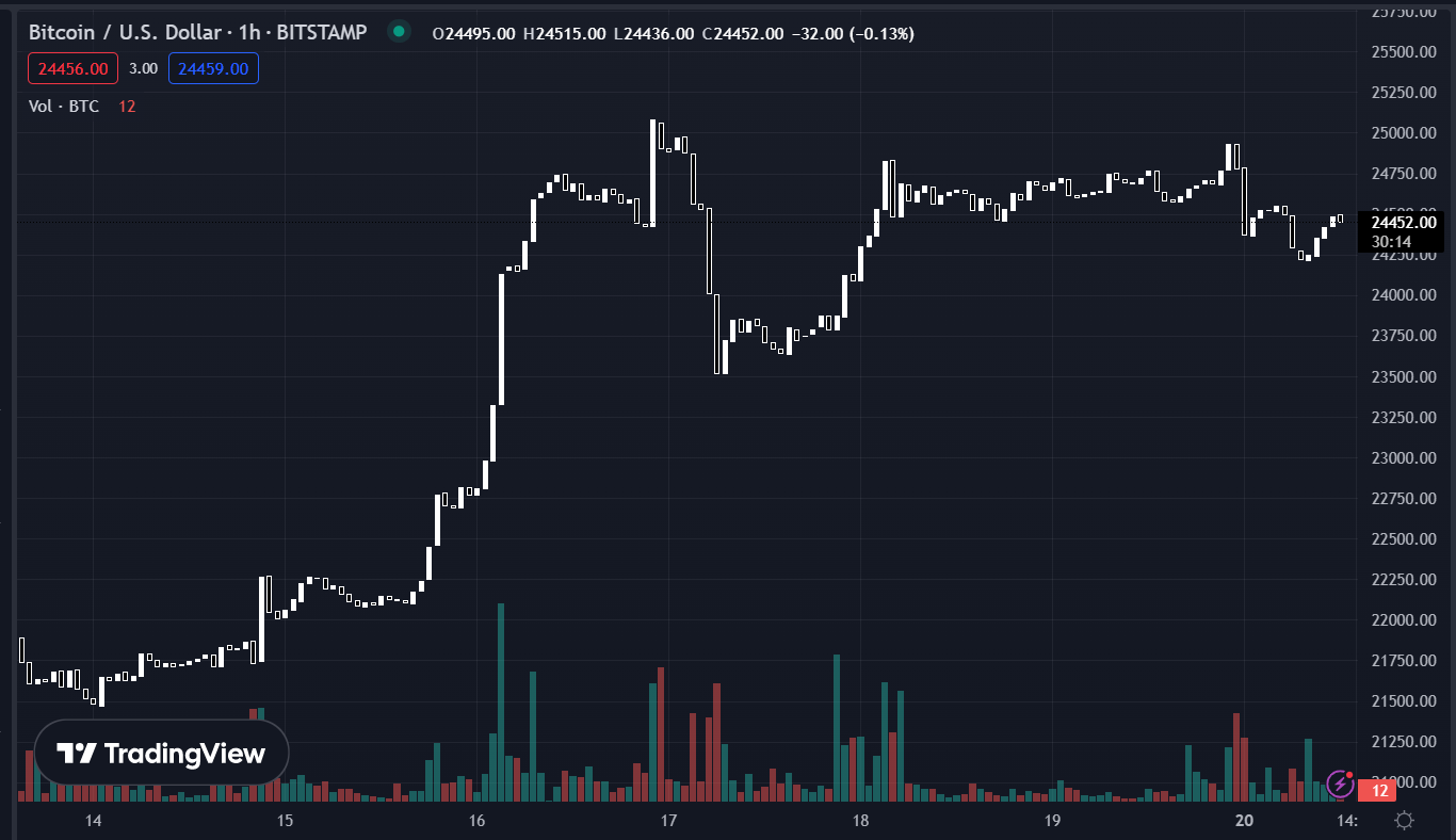 BTCUSD tăng 0.64%, hiện ở $24,452.00