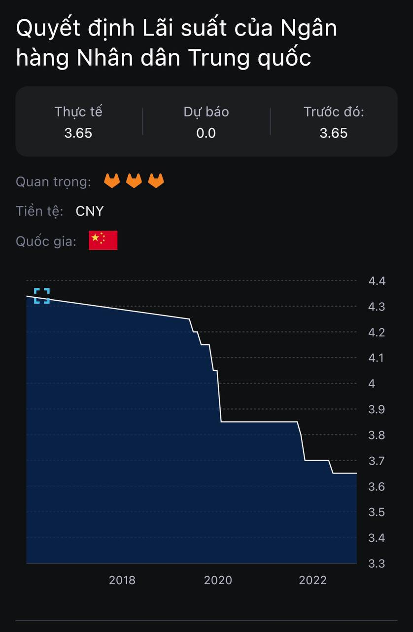 • LPR kỳ hạn 1 năm được giữ ở mức 3.65% trong tháng thứ sáu liên tiếp. Hầu hết các khoản vay mới và dư nợ ở Trung Quốc đều dựa trên dữ liệu này.